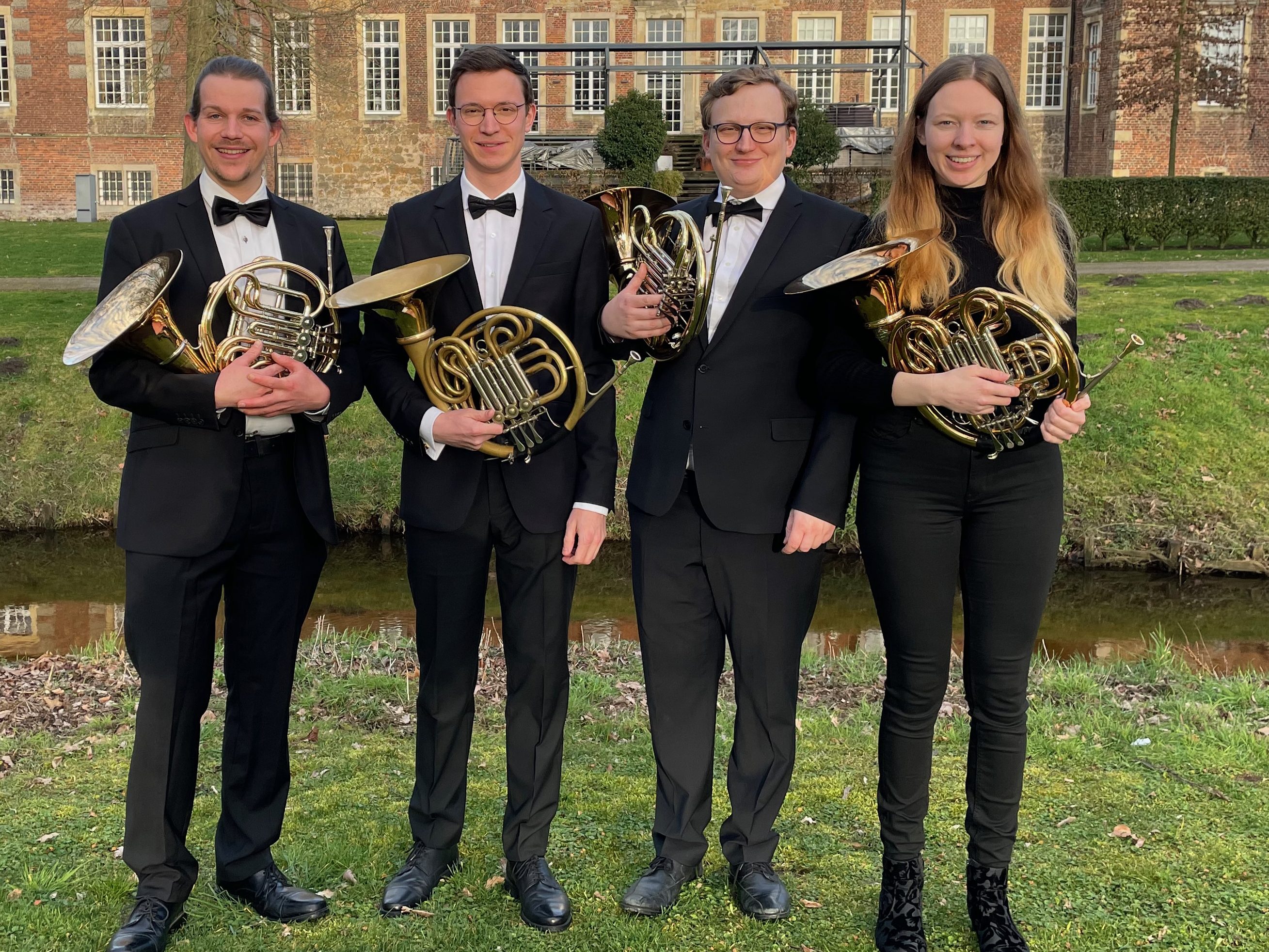 Was ist besser als ein Einhorn? Natürlich vier Hörner! Wir sind das Hornquartett „uniquehorns“ und zaubern besondere Klangfarben aus unseren goldenen Instrumenten: Von warmen, sanft-zärtlichen Klängen bis hin zu majestätischem oder gar furios aufbrausendem Schall bietet das Waldhorn eine große Bandbreite. Nach unserer Gründung im Jahr 2018 konzertierte das Ensemble unter anderem in diversen münsterländischen Kirchen und bei universitären Veranstaltungen. Ein Höhepunkt stellt sicherlich unsere Teilnahme am studentischen Festival „Neue Wände“ im Theater Münster dar. Unsere aktuellen Mitglieder Pascal Féaux de Lacroix, Wilko Martens, Sophia Henke und Nikolas Lefering freuen sich auf das Konzert mit Rose Lohmann im Rahmen der Marktmusik 2024.
