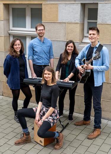aus popcover-ensemble mit klavier, beat und gitarre und gelesenen bibeltexten